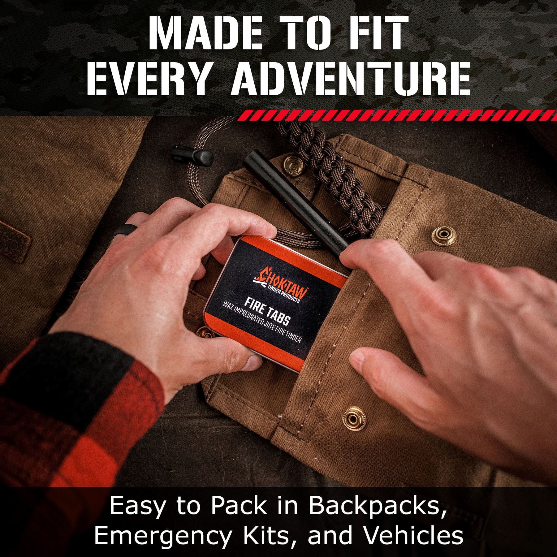 Any of the CHOKTAW Tinder products are perfect additions to your survival kits, emergency kits, bug-out bags, camping gear, or vehicles. With CHOKTAW Tinder, you know you’re always prepared.
