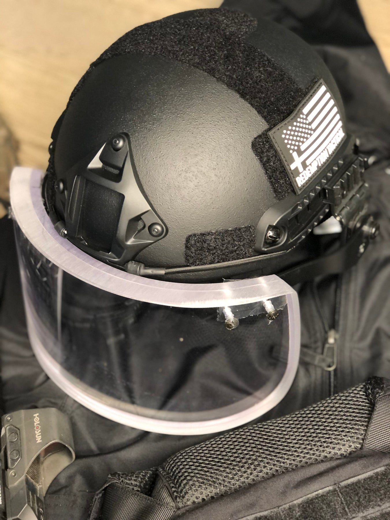 It allows you to have protection for your face while still being able to have your full range of view through the ballistic glass.