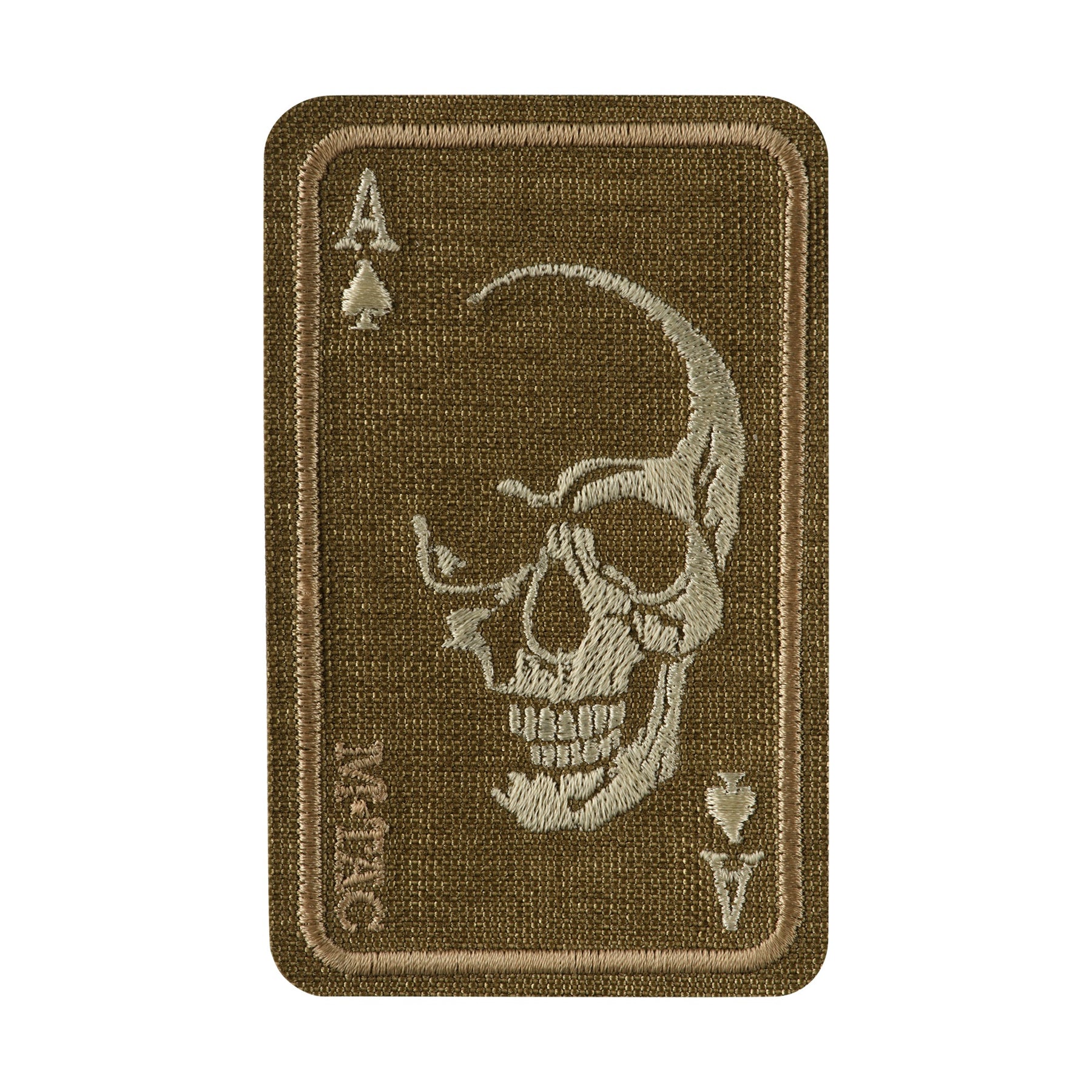 The FACE OF WAR morale patch from M-Taс is a new interpretation of the "card of death", which has been known since the Vietnam War. The patch is made in the form of an ace of spades card with an embroidered skull silhouette in the center. Among the military, the skull signifies fearlessness in the face of death. The ace of spades is considered the eldest card, therefore it necessarily marks the victory of life over death. The patch is made of high-quality Cordura 500D material, which is resistant to abrasion and sun bleaching. The picture is applied with colored embroidery, which makes the patch more refined. Attaches to clothing or equipment with hook fastener.