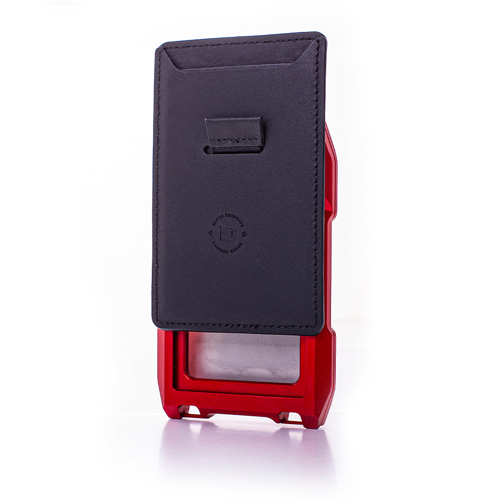 The A10 wallet chassis is made of machined 6061 aerospace grade aluminum and anodized in crimson red to perfection. The A10 is equipped with Dango’s popular and unique patent pending quick release rail mechanism on both sides of the wallet that allows easy access to cards while keeping them securely in place. On one side of the chassis is a horizontal cavity holding up to 4 cards and RFID protected by the backplate. On the other side is a vertical rail cavity for adapters or 1 open access card. Display identification cards, badges and any other cards that needs scanning; perfect for accessing secured buildings and boarding public transportation. In addition, the A10 Chassis Clip can be easily installed with a single screw to hold extra items like cash and notes. (sold separately)