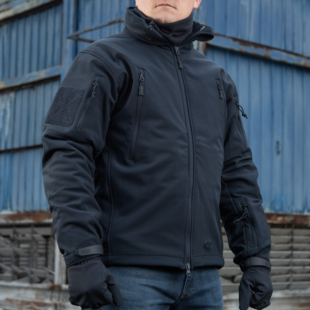 The M-TAC Soft Shell Jacket with detachable lining is made of an interlayer polyurethane membrane that protects from bad weather. Inside, it has a thin fleece. In this model, the manufacturer has added detachable fleece lining, which is attached with a zipper (can be worn as a separate item of clothing). The softshell products have several outstanding properties: their low weight and the combination of two layers of clothing in one. The softshell combines an outer layer (for protection from wind and wet weather) and an insulating inner layer. The top fabric is not only moisture-deflecting but also dirt-deflecting as well. Besides, the soft and streamlined material makes it more comfortable to wear. The front zipper is made by YKK. The zipper has high quality and performs its function without any problems. Due to the presence of a number of pockets, it has increased functionality. Available two shoulder pockets, two inside pockets, two hand pockets, horizontal back pocket, forearm pocket. Axillary ventilation zippers improve thermoregulation. Elastic cord at the waist and adjustable wrist cuffs allow you to fit the jacket more comfortably on the body. And the compactly folded hood located at the back of the collar will always protect you from rain or snow. Side loop panels on the sleeves allows to wear various moral patches.