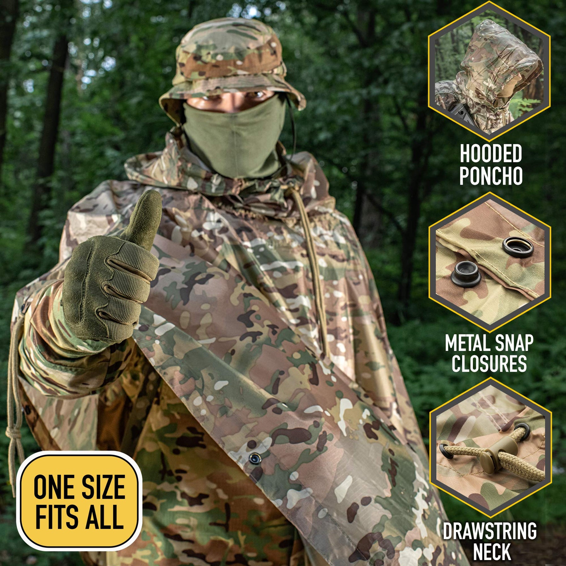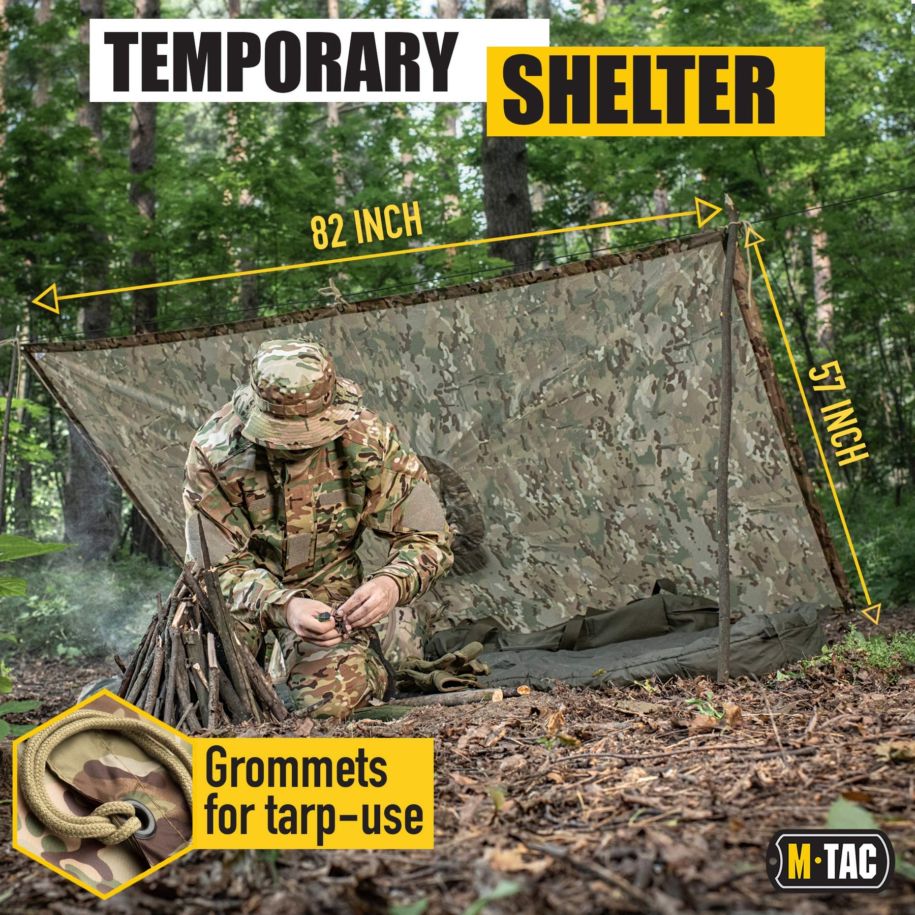 The copy of an American poncho made by the M-Tac brand. Material - 100% polyamide. Fabric - Rip-Stop. Complete set - poncho and portable bag. The product itself has universal functionality. It can be used as outerwear in the form of a raincoat, awning, or tent - a temporary shelter. The product has buttons, eyelets, and tension ropes.