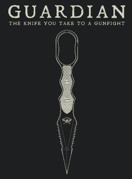 Written in black on the back is " Guardian The Knife You Can Take To A Gunfight."